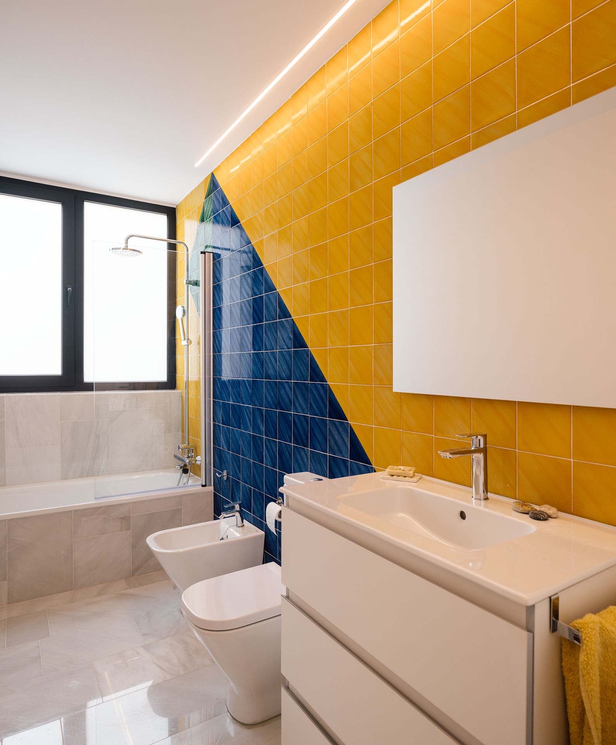A standout feature of the project is the use of Fajalauza ceramics, a pottery tradition from Granada with over five centuries of history. This choice not only honors the local craft but also builds a bridge between memory, material culture, and contemporary design. The ceramics function as a narrative surface, adding texture, identity, and warmth to the renovated interior.