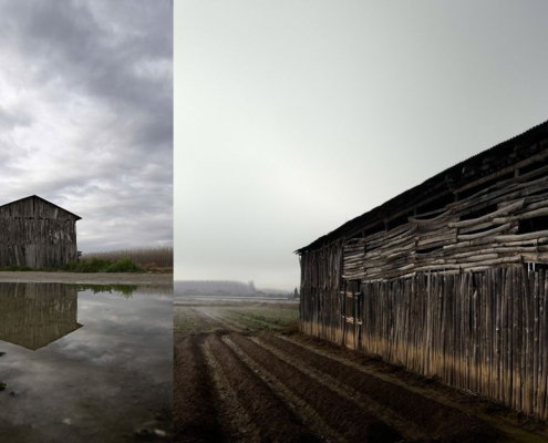 – A verticalized volume, evoking the isolated drying sheds standing among the fields.