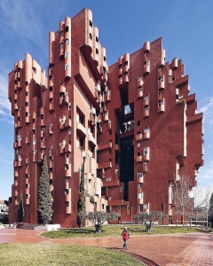 Walden 7, Barcelona, Ricardo Bofill (1975). Complejo residencial que explora la vida colectiva mediante una estructura vertical interconectada.