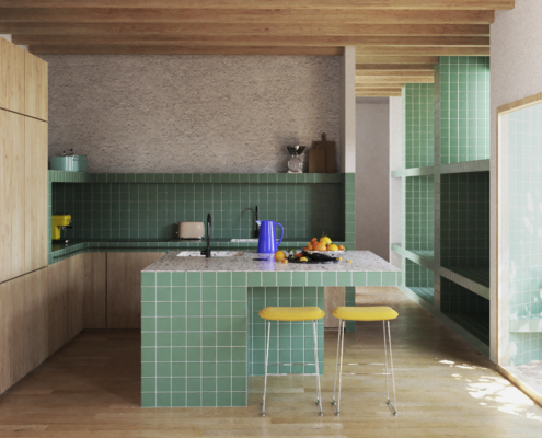 Casa Alfacar bebe de la arquitectura tradicional de sierra: muros gruesos, protección solar, patios, orientaciones estratégicas y uso de materiales del entorno. Sin embargo, lo hace desde una mirada contemporánea que renuncia a la nostalgia formal para centrarse en los principios que dan sentido a lo vernáculo: sostenibilidad pasiva, escala humana y adecuación climática.