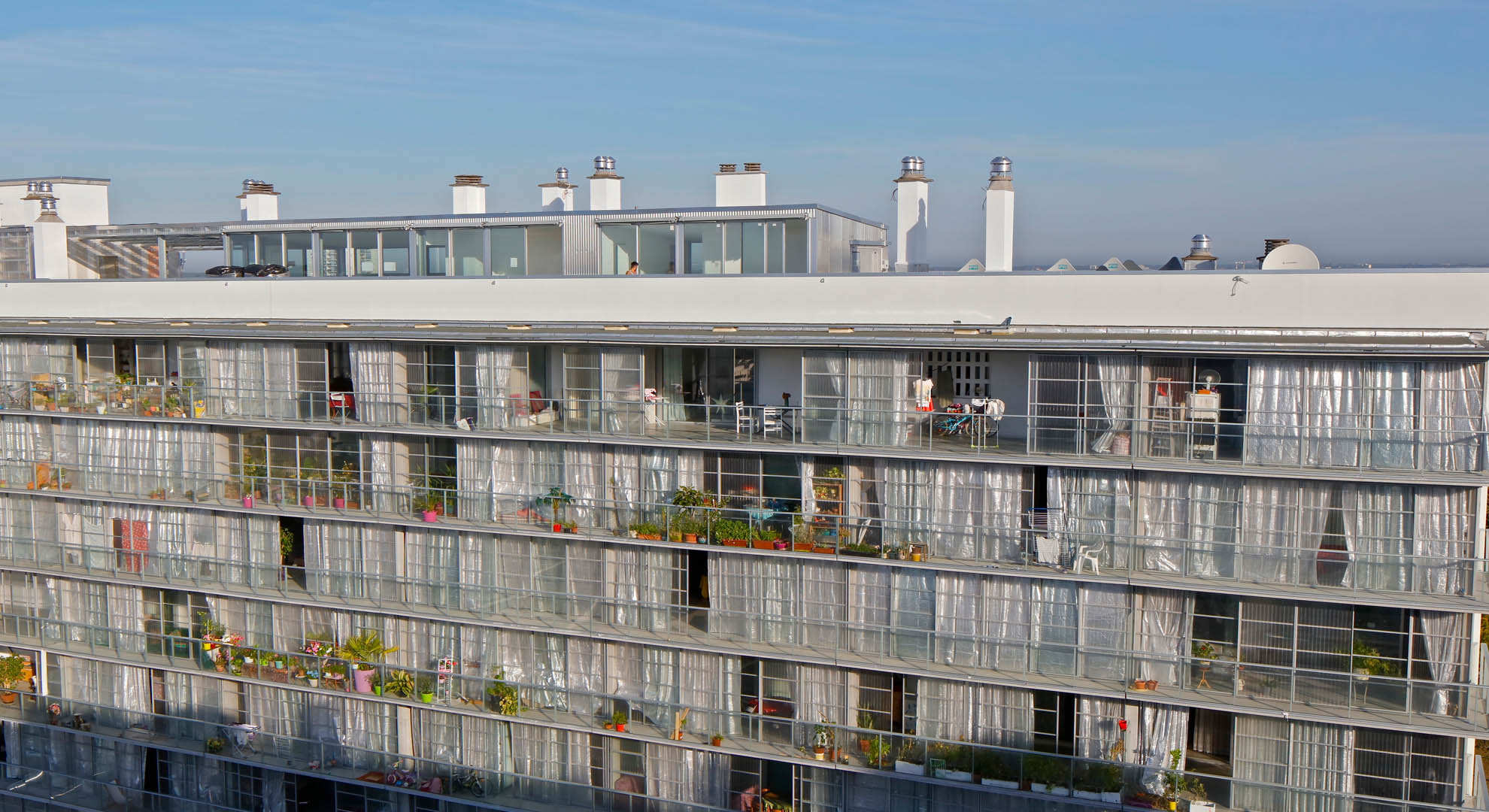 Otro proyecto relevante es la rehabilitación de la Tour Bois-le-Prêtre en París, donde se aplicó una estrategia similar basada en la ampliación de los apartamentos mediante estructuras ligeras y jardines de invierno.